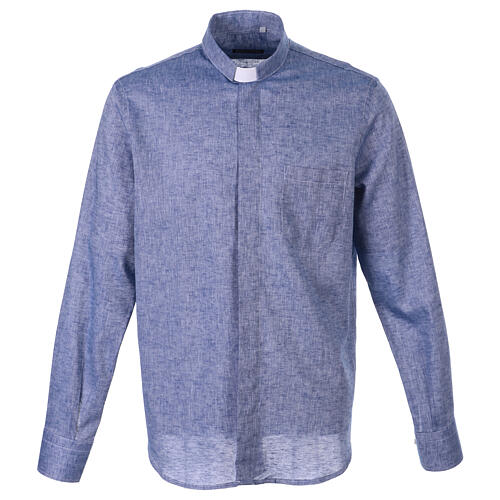 Camisa para sacerdote linho algodão azul escuro Cococler