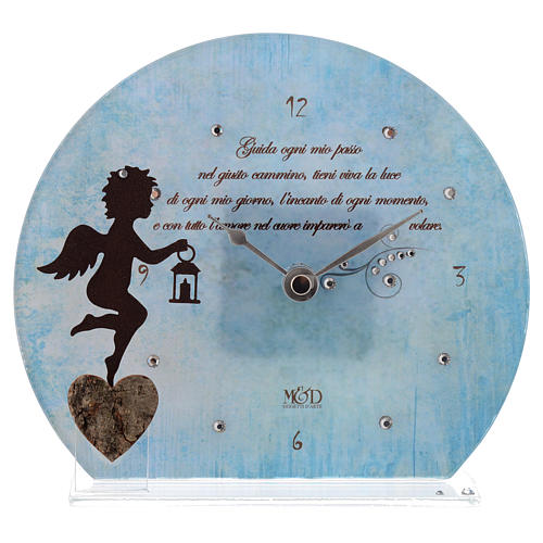 Relógio anjo com poema azul