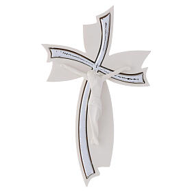 Cruz anjos vidro Murano água-marinha e prata h 14,5 cm
