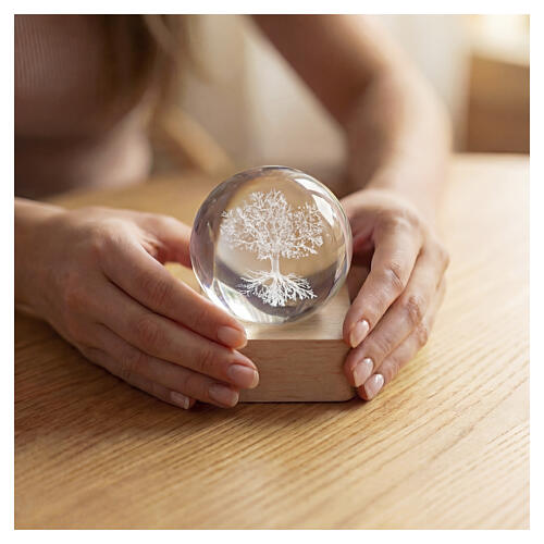 Esfera de cristal Árvore da Vida base quadrada 6 cm