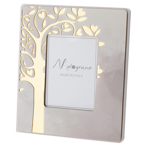 Porta-retrato de mesa árvore da vida 16x14 cm branco e dourado.