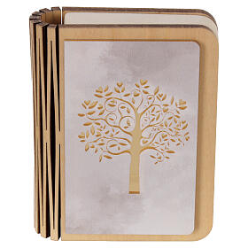 Lembrança de Crisma livro Árvore da Vida LED recarregável USB 10x8 cm