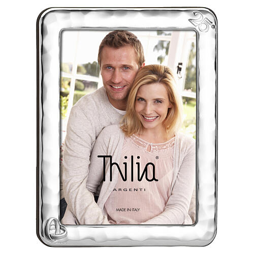 Porta-retrato Thilia 24x18 cm aniversário 25 anos borda martelada alianças prateadas.