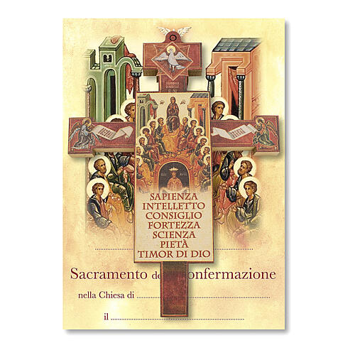 Cruz lembrança Crisma com diploma ícone Pentecostes 13,5x9,5 cm.