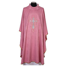 Casula cor-de-rosa poliéster IHS cruz estilizada 4 cores